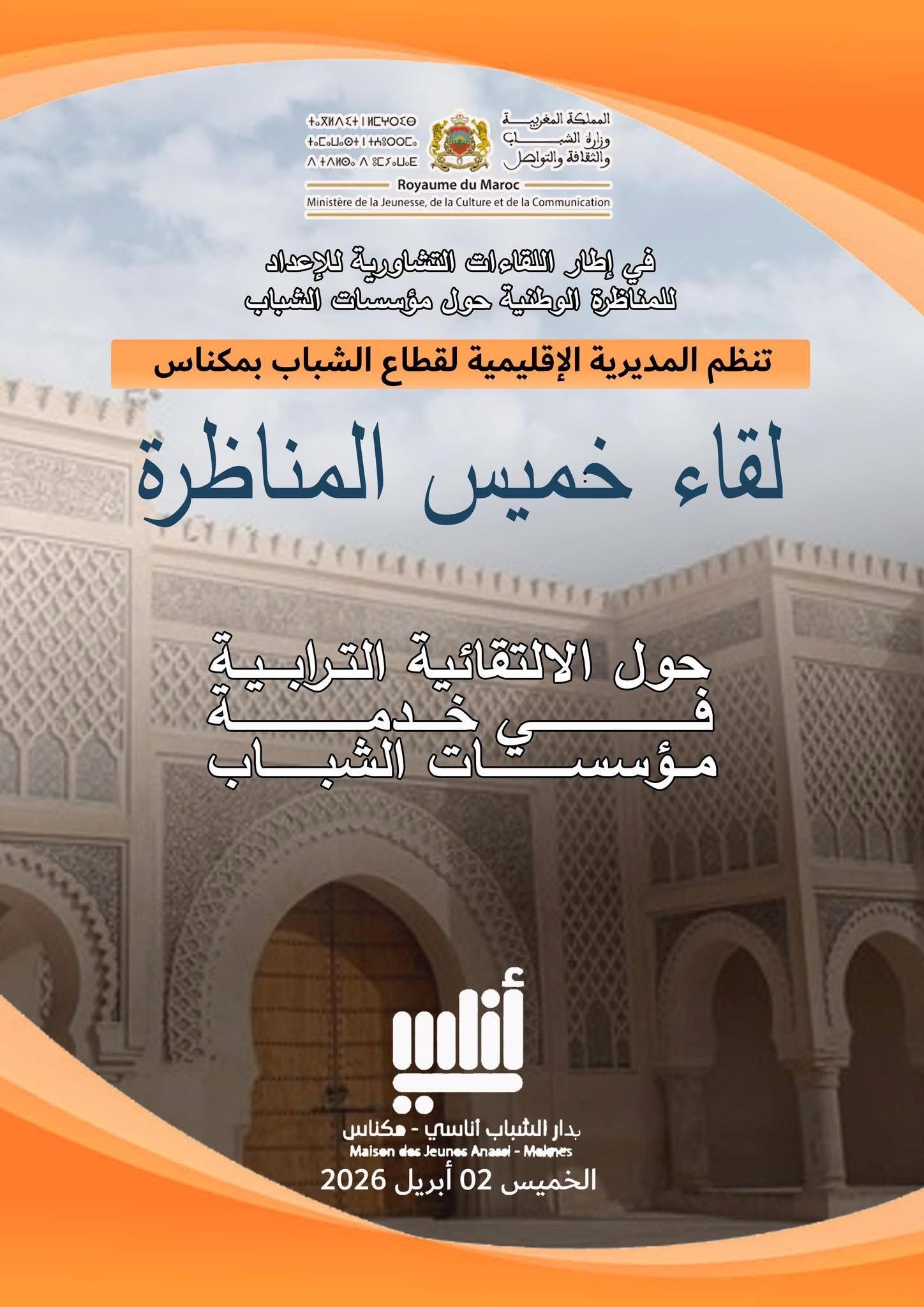 في أفق عقد المناظرة الوطنية لتطوير مؤسسات الشباب، حضر ممثلي مجلس العمالة يومه الخميس 2 أبريل اجتماعا ترأسه السيد المدير الاقليمي للشباب وثلة من ممثلي المصالح اللامركزية والجمعيات العاملة في مجال تسيير دور الشباب والتخييم. وقد كانت مناسبة لتقديم توصيات من أجل تحسين آداء دور الشباب.