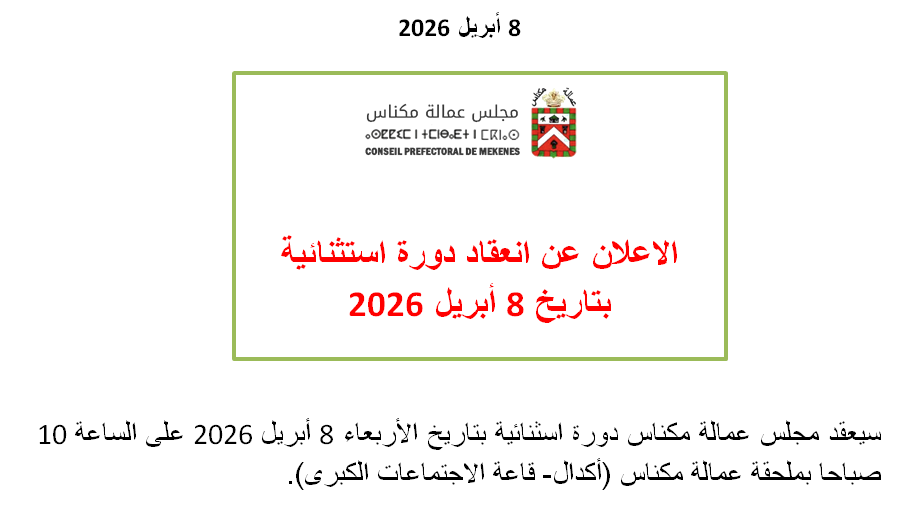 انعقاد الدورة الاستثنائية بتاريخ 8 أبريل 2026