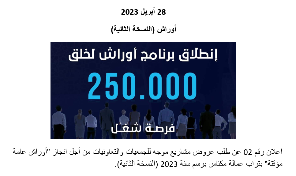 عروض مشاريع موجه للجمعيات والتعاونيات